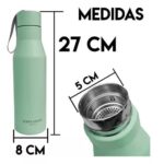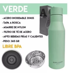 Mantiene el frío y el calor. Capacidad: 650 Ml. Material: Acero inoxidable. Tapa doble a rosca con pico. Productos aprobados