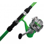 Cuenta con una caña de acción media de 2,10 mts con carrete y línea principal, todo adecuado para spinning, pesca con señuelos o pesca con flotador.