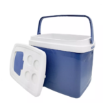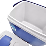 Conservadora grande con manija y posa vasos en su tapa, con compartimiento de acceso sin necesidad de abrir la tapa.