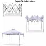Gazebo con estructura plegable de metal reforzado. No contiene partes sueltas, super liviano con techo impermeable. Fácil armado en solo 3 pasos